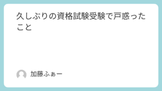 久しぶりの資格試験受験久しぶりに資格試験を受験しました。20年ぶりくらいでしょうか。受験そのものについては合格発表後にすることとして、久しぶりの受験で戸惑ったことを記録しておきます。ちなみに私は資格試験受験においていくつか決めていることがあ...