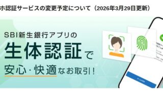 SBI新生銀行 SBI新生銀行、スマホ認証サービスを従来の「VIP Access」アプリによる認証から、「SBI新生銀行アプリ」による認証へ SBI新生銀行、スマホ認証サービスを変更2026年3月、SBI新生銀行がスマホ認証サービスを変更しました。以前に予告されていた通り、「VIP Access」アプリによる認証から、「SBI新生銀行アプリ」による認証への変更です。「VIP Ac... 2026.04.04 SBI新生銀行