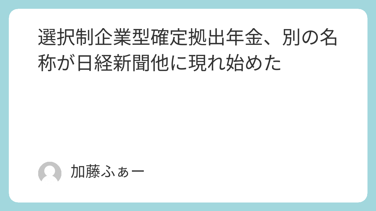 最近この選択制企業型確定拠出年金という名称ではなく、別の呼び名が使われているのをしばしば目にするようになりました。
