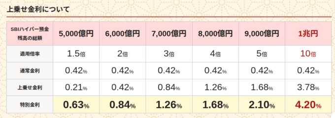 1兆円まで達しなくても、預金残高に応じて金利がプラスされていくので応募して損はないキャンペーンです。
