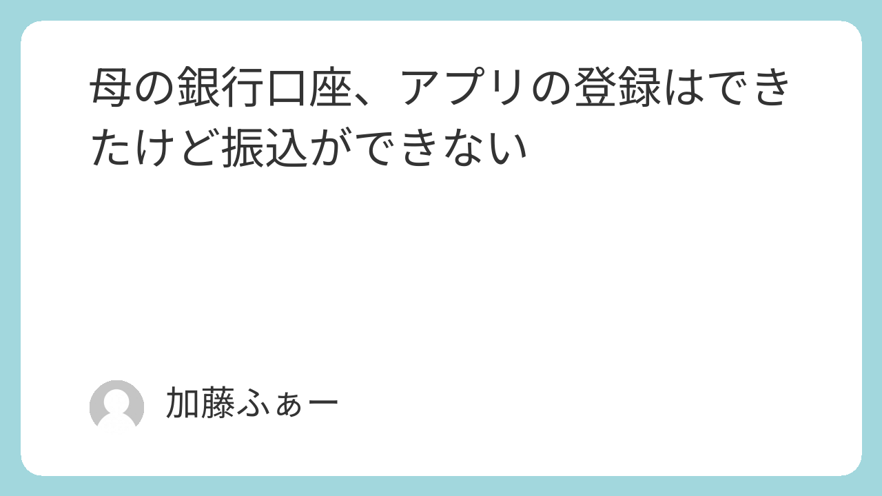母の銀行口座ですが、連絡先を私の住所、電話番号を私の電話番号にすることで、なんとかアプリの登録まで完了しました。